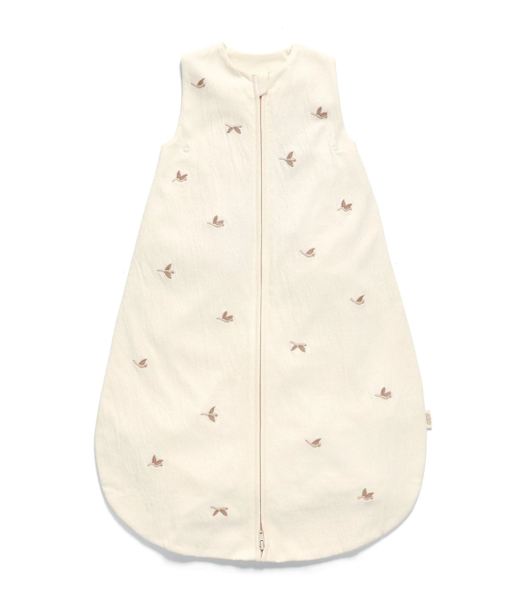 1.0 Tog Dreampod, suitable from birth. Made from super soft 1.0 Tog textured jersey fabric in an off-white base colour with tonal flying duck embroideries throughout. With shoulder popper openings and bottom zip opening for easy changing. Find the perfect fit even as baby grows, with poppers below arm openings. Suitable for 0-6 months.