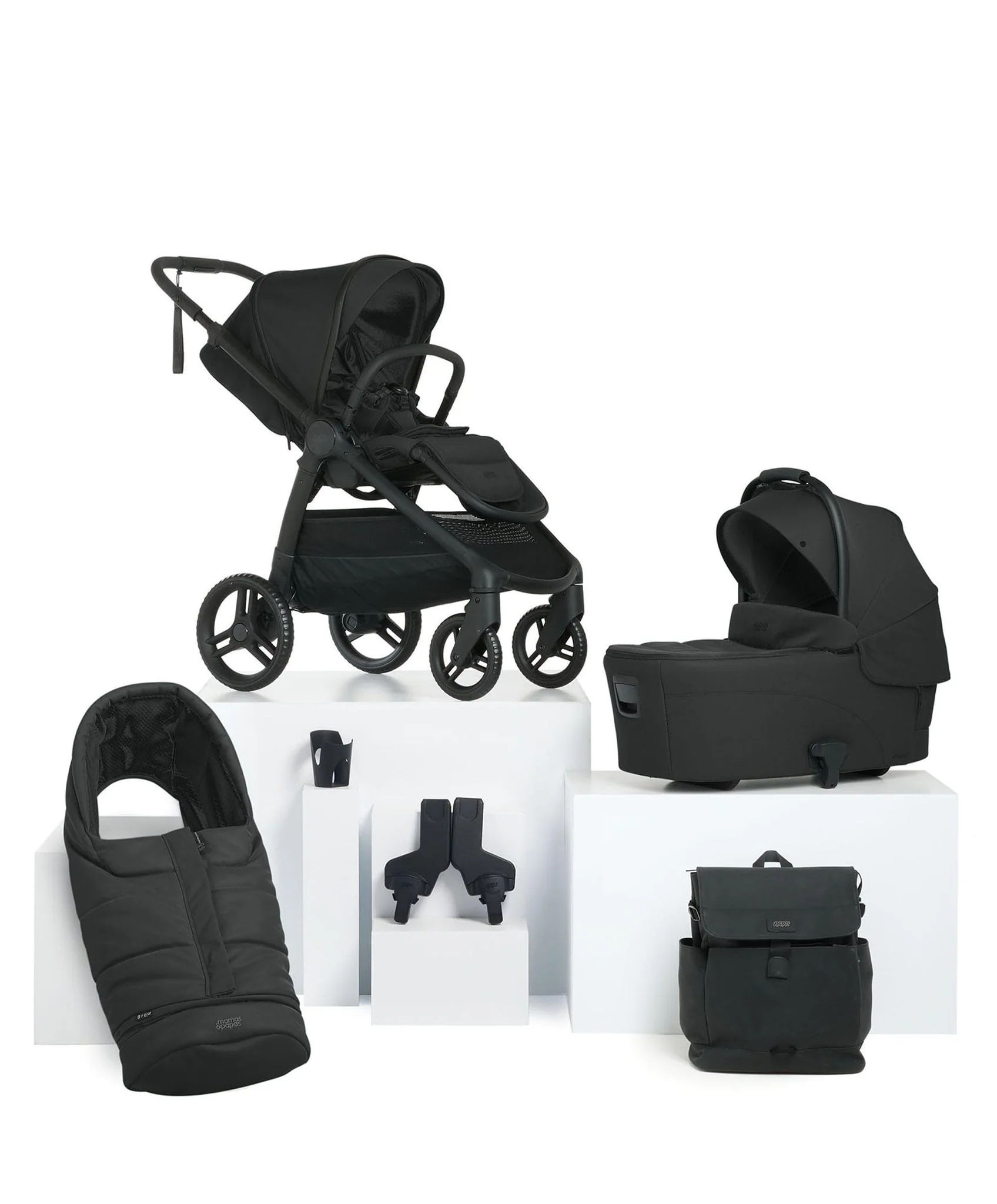 This bundle includes: Ocarro 2 Pushchair, Ocarro 2 Carrycot, Ocarro 2 Footmuff, Utilitarian Backpack, Car Seat Adaptors – Armadillo, Flip XT, Ocarro and Ocarro 2 – Cybex/Maxi-Cosi, Cup Holder.