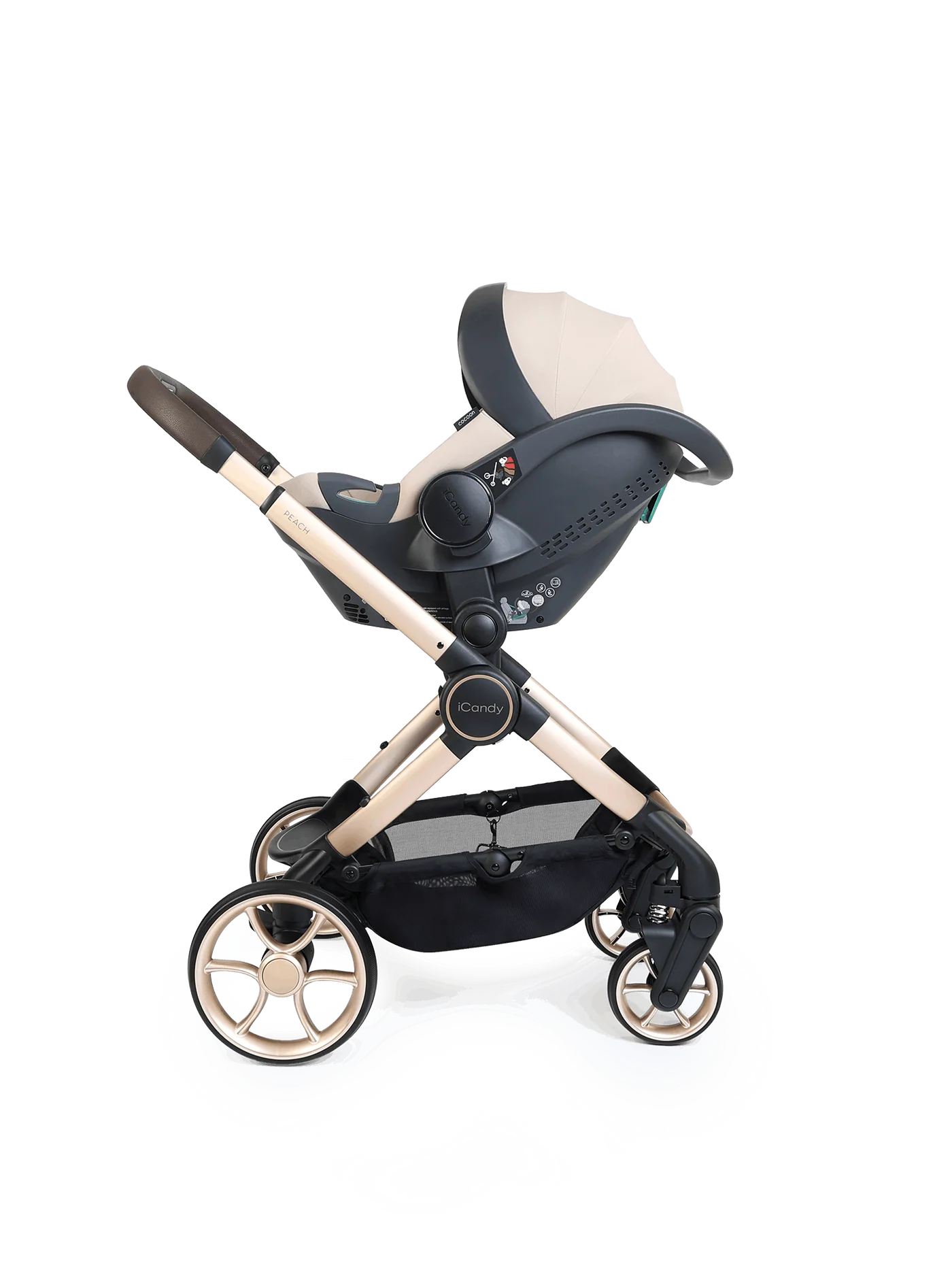 The spacious, collapsible iCandy Peach 8 carrycot has been upgraded to provide significantly increased airflow and is approved by The Lullaby Trust for permanent overnight sleeping when used on the pushchair or with the compatible iCandy MiStand.